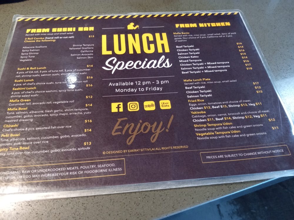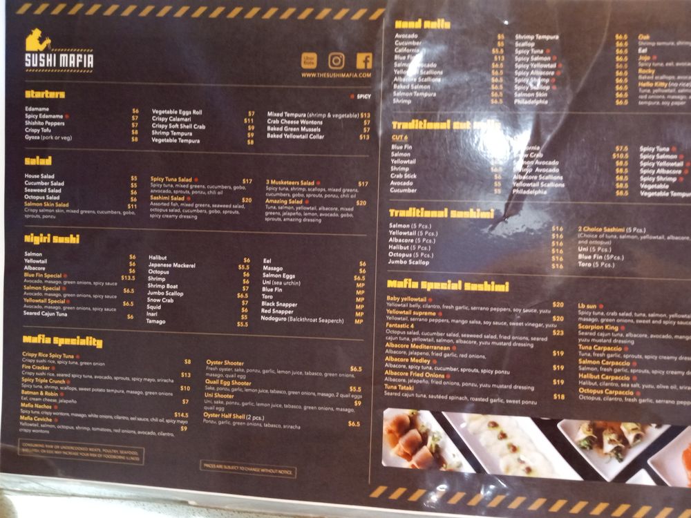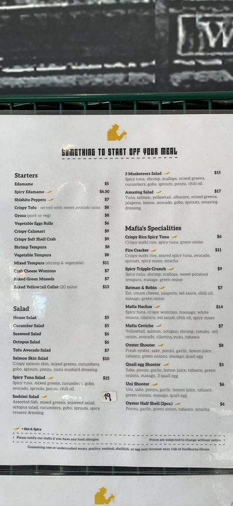 Sushi Mafia Menu